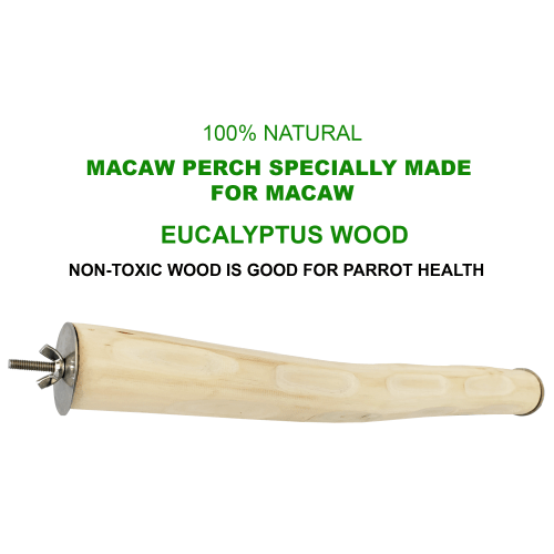 Perches play a very important role in your birds overall health. Pet bird perches should be of different sizes and irregular. This aids in the exercising of the feet ensuring that muscle condition and coordination do not deteriorate due to lack of foot movement along the perches. As a general rule, your bird’s feet should go 3/4 of the way around the perch but in nature, the birds perch on tree limbs of varying sizes. It is recommended that you use two or more different diameter perches. Remember, however, that allowing your bird to play on top of his cage or walk on the floor will also exercise his feet