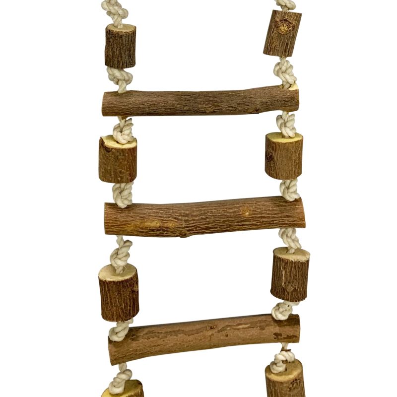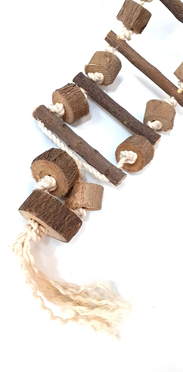 The perfect perch and climbing zone for your small to medium sized bird. Easily hang this wooden climbing ladder across the cage and make a short ‘bridge’ for your precious birds. The natural wood of the ladder is the best material for your birds to perch and climb on. It is a sustainable and environment-friendly material and will provide them with optimal foot health, as well as hours of physical and mental stimulation. This bird ladder will also fancy up the cage for your feathered friends. The wooden rungs are lots of fun and very attractive for your birds. The stairs of the bird ladder are connected by a sturdy strong thread. This thread is extremely strong, durable and flexible. Easily hang and install this ladder inside your bird’s cage for immediate fun and stimulation for your birds. The wooden bird ladder is the ideal accessory for small to medium sized birds.So, whether you own a parakeet, cockatoo, macaw, and budgie or parrot this ladder, it is the ultimate accessory for physical and mental development of your beautiful birds!